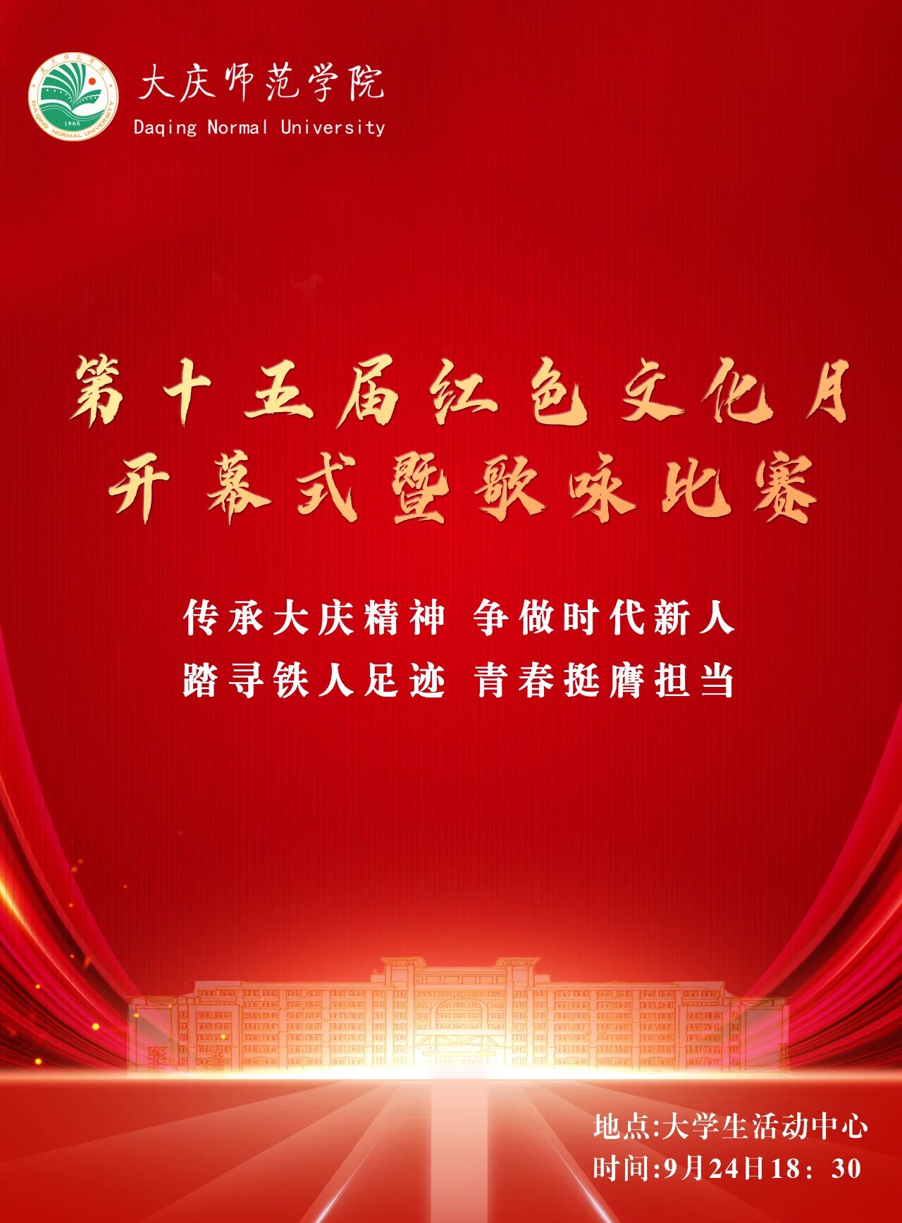 大庆师范学院第十五届红色文化月开幕式暨歌咏比赛即将启幕!让我们共赴盛会!