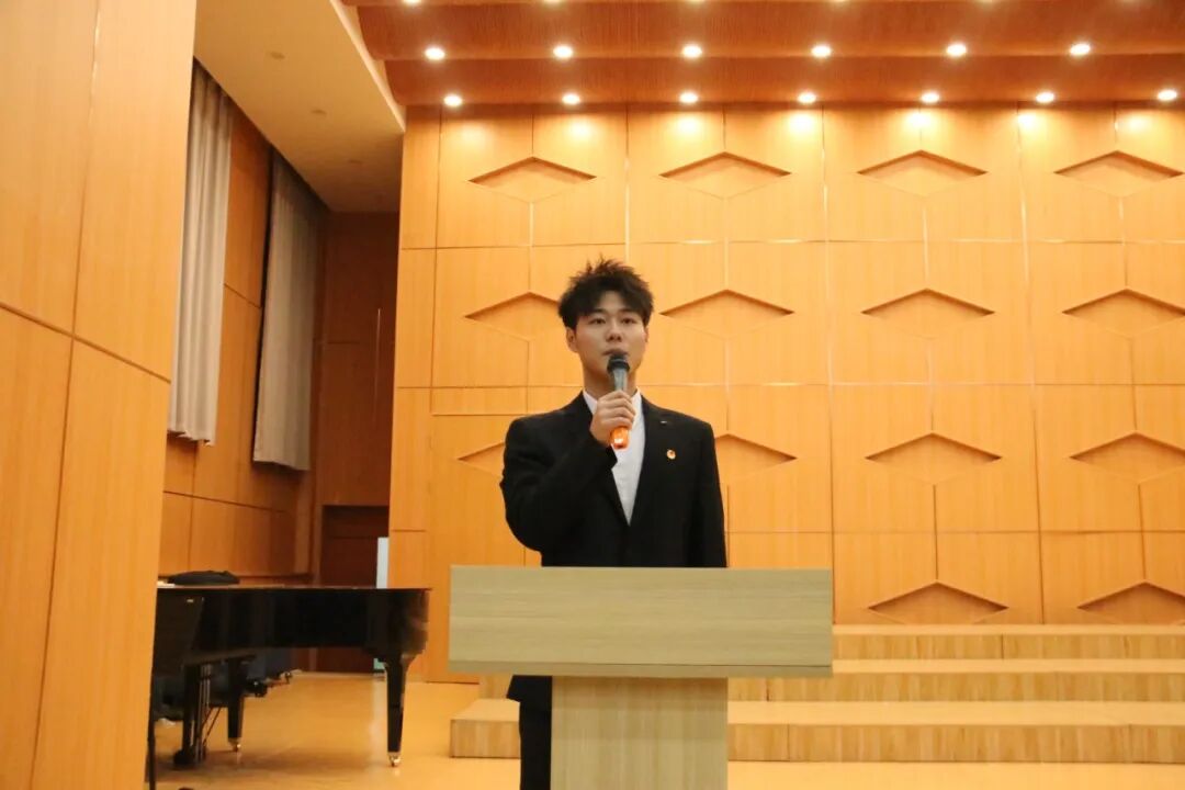 2025级音乐教育一班朱彤同学作为新团员代表发言。她表示,将以入团为新起点,严守团的纪律,深耕专业学习,积极投身校园文化建设与社会实践,以青春之我践行团员使命。优秀团员代表2024级音乐表演(器乐)二班高艺萌同学分享了自己的成长经历与感悟,鼓励新团员们以理想为灯、以实干为径,在青春赛道上勇毅前行,让团旗在奋斗征程中熠熠生辉。